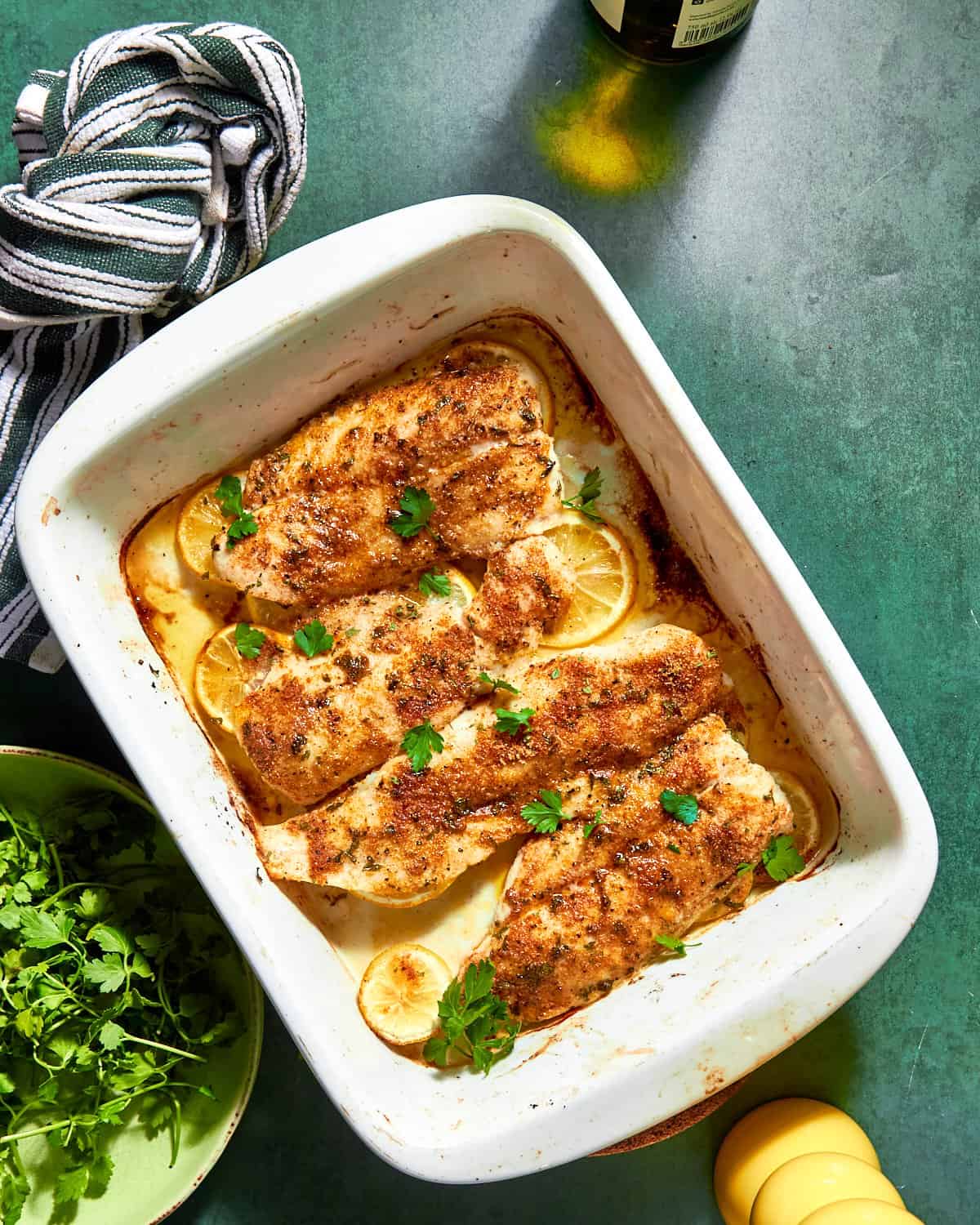 Thickness matters more than weight when baking fish, which is why timing can feel inconsistent from one fillet to another. The lemon-bed method helps buffer direct heat underneath the fish while adding a bit of steam, giving you a wider margin for error and more reliable results.