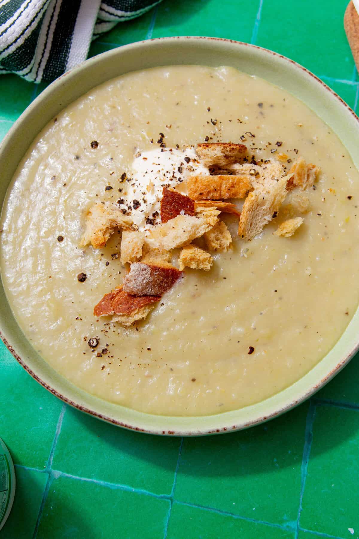 I recommend either using creme fraiche like I did in this potato and leek soup recipe or using no cream or creme fraiche and just creaming the soup with a hand blender.