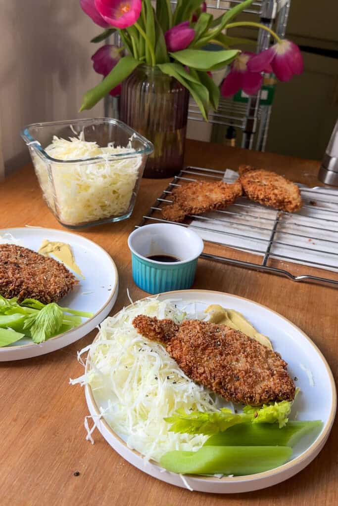 Crispy, golden pork loins, served with a crunchy fresh cabbage salad. This is my budget take of the Japanese classic, a Tonkatsu-Inspired Pork and Cabbage Salad.