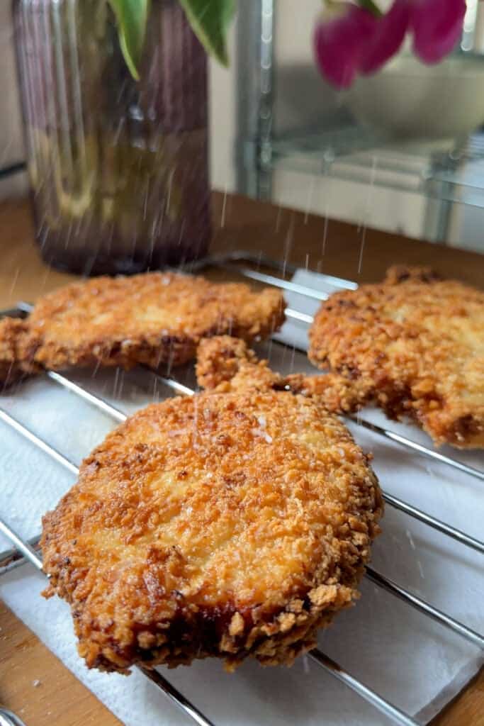 Step 5: Place on a wire rack and season immediately with salt.